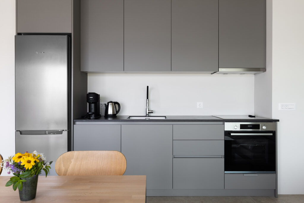 Και τα δύο επίπεδα διαθέτουν ένα wc με ντους. Οι δύο όροφοι συνδέονται με εσωτερική σκάλα. Μια εξωτερική, χαμηλής γωνίας, σκάλα συνδέει τις τρεις κατοικίες. Τα μεγάλα συρόμενα παράθυρα, οι βεράντες που προστατεύονται από τον ήλιο και τον άνεμο και ο κλιματισμός, καθιστούν κάθε βίλα ένα ιδανικό σπίτι όλο το χρόνο, όπου οι επισκέπτες μπορούν να απολαύσουν την ομορφιά κάθε εποχής.